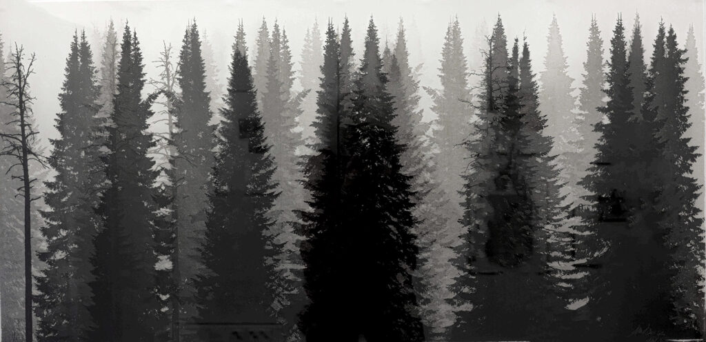 Lahjoituskokoelmassa on työparin töitä myös sarjasta Kultainen metsä. “Shintolainen puupyhättö, koskematon ikimetsä Kuusamossa ja hakkuuaukea Ilomantsissa, siinä on jotain meitä suurempaa, jotain meistä riippumatonta ja jotain valtaamme alistettua.” Puihin liittyvä uskomusperinne on Japanissa ja Virossa säilynyt Suomea elävämpänä. Työt Shikokun saarelta Japanista ja Viron maaseudulta lomittuvat viimeisten suomalaisten aarniometsien aarteisiin. Halukkaat voivat tiedustella myytävistä töistä Ikimetsäpuodista.