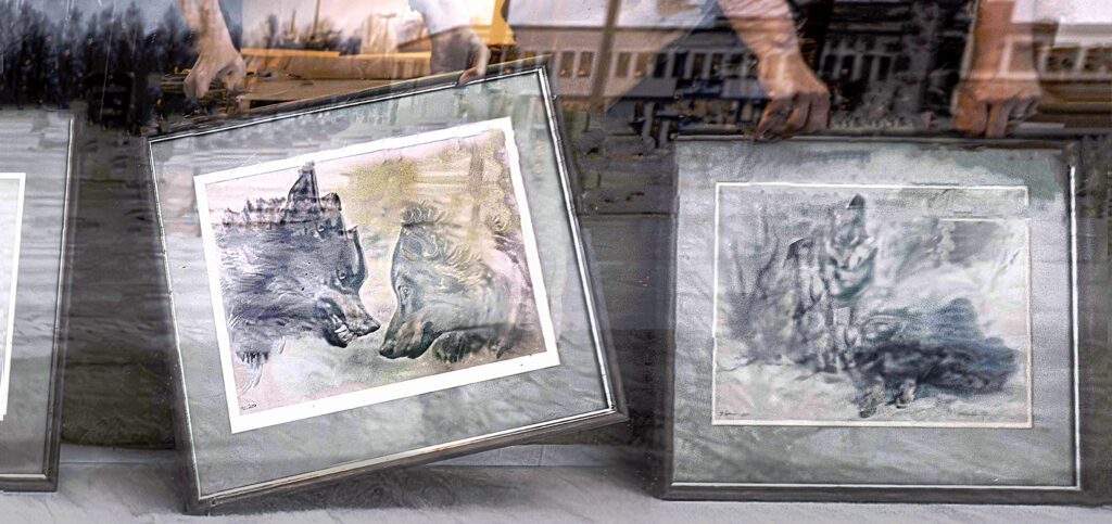 Marraskuun näyttelyiden ikkunagalleriassa on esillä Sanni Sepon upea aarnimetsäpanoraama sekä Rauni Vastinesluoman lintuja.