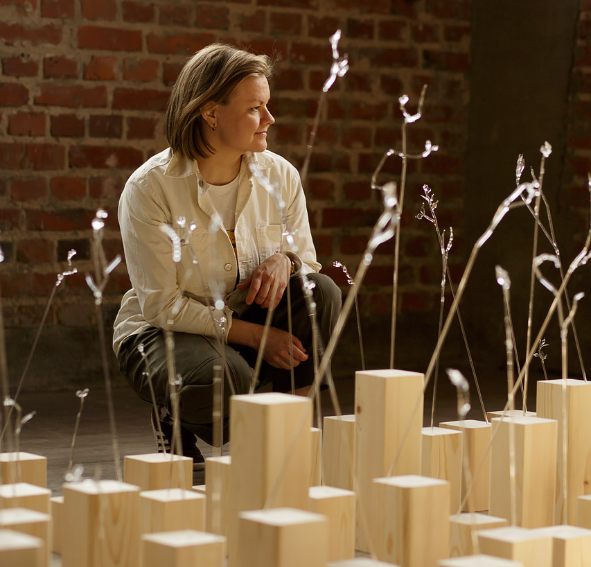 Teosten lasimateriaali on laboratoriolasina paremmin tunnettua borosilikaattia. Tiilimateriaali on purettavista rakennuksista kierrätettyä. Lisäksi näyttelyssä on esillä teoksia Vaalimisen arvoista teossarjasta, joka on toeutettu lasista ja japanilaisella shou sugi ban-tekniikalla viimeistellystä koivusta sekä suuresta koivunpahkasta riippuvista lasisista rihmoista riippuva Harsosääsken koti teos. Ikimetsägallerian ylätasanteella on uhanalaisista tai rauhoitetuista perhosista muistuttava Perhosaiheinen teos.