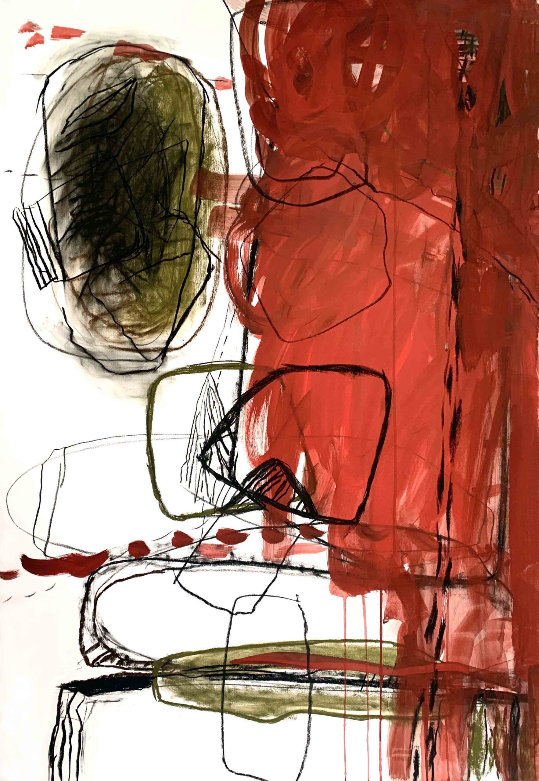 Väri ja viiva luovat uuden todellisuuden jonka käyttövoima on liike. Tumman ja vaalean kontrastit, sileät ja karheat pinnat sekä värit, punaisen ja vihreän eri sävyt käyvät keskenään vuoropuhelua. Näkymä muuttuu hiljalleen liikkeen voimasta. Kuljetut reitit, polut ja maantiet näkyvät jälkinä kankaalla.
