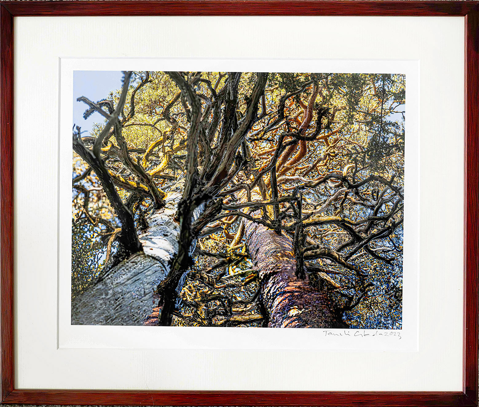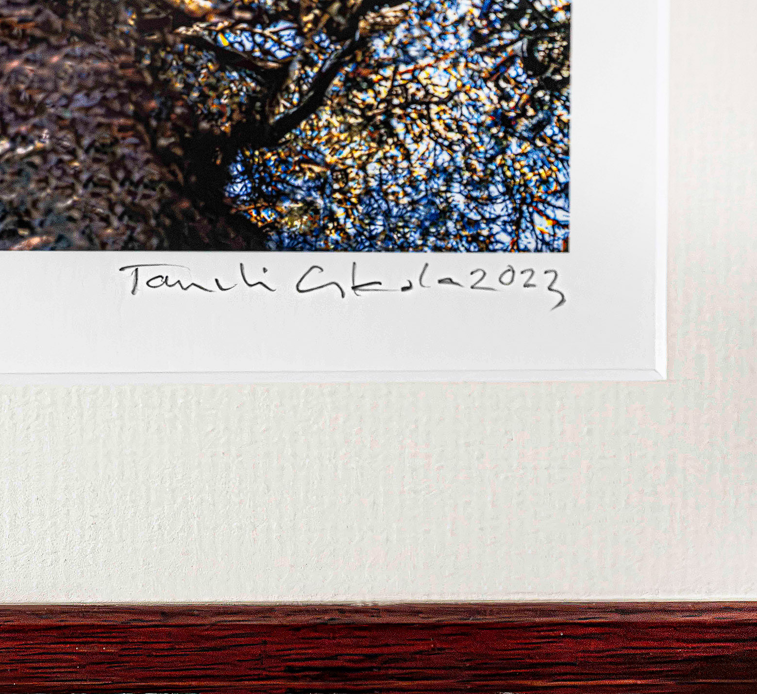 Kehystys- ja ripustustietoja: Punaisenruskea siro puukehys, lämmin paspartuuri