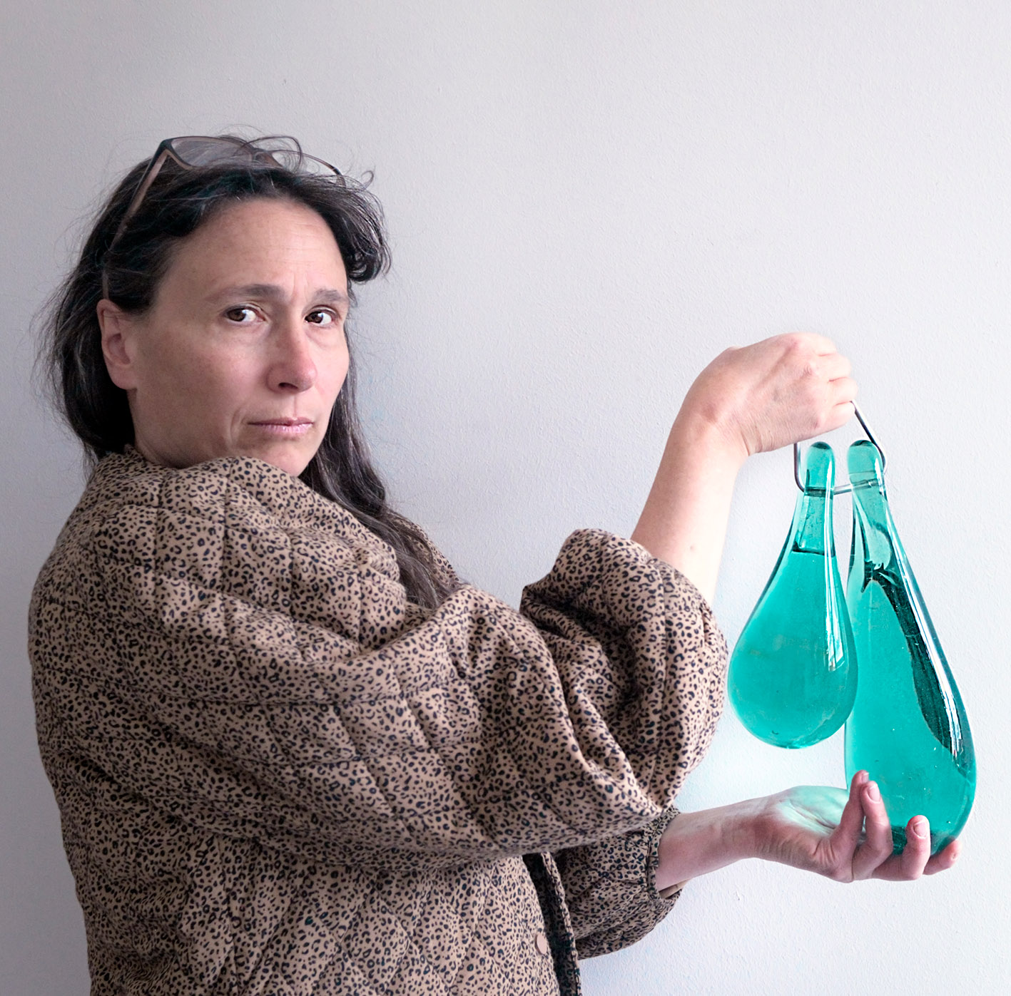 Renata Schirm. Green Pair. Ripustettava veistos. Puhallettu lasi, metalli. Korkeus 40 cm.