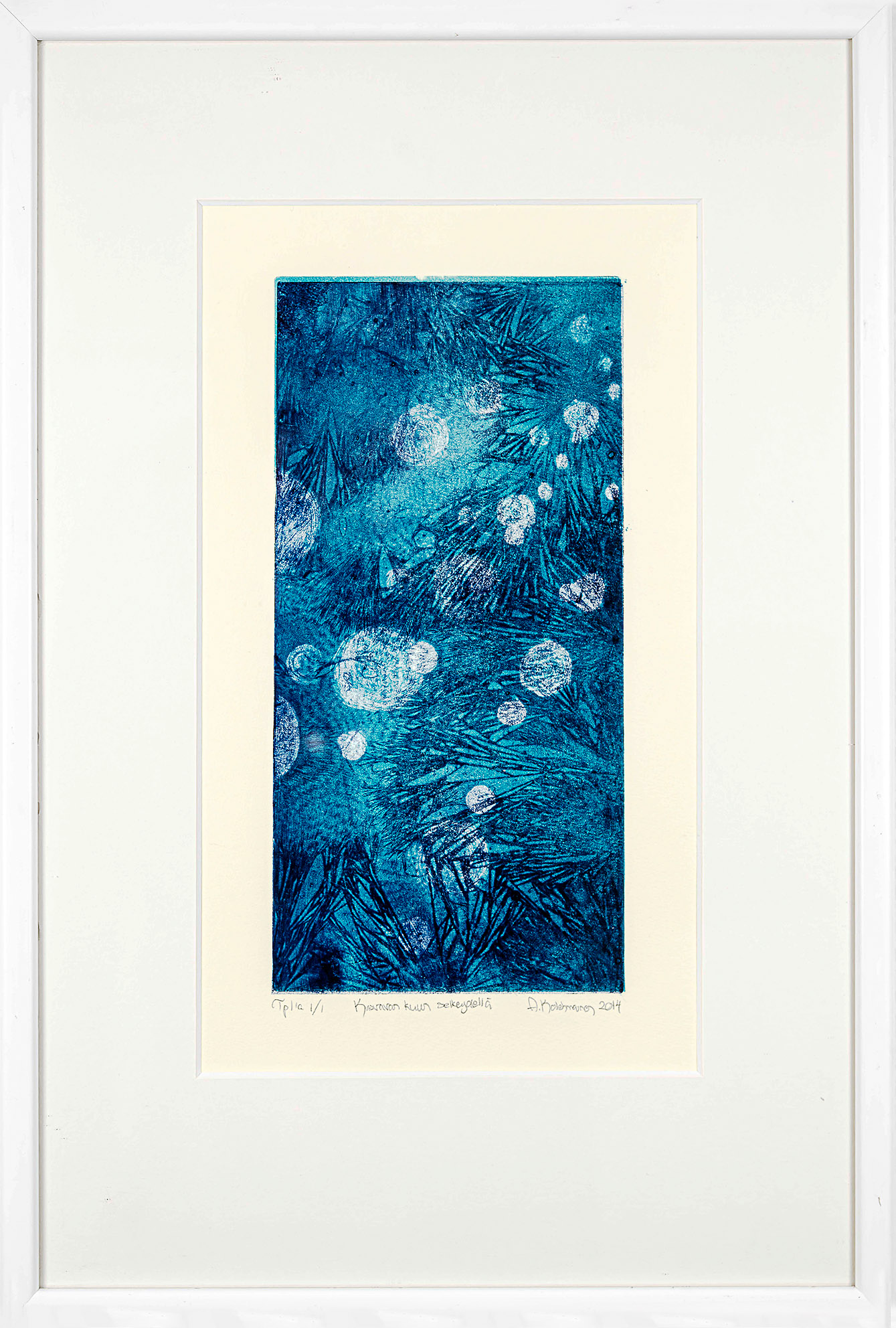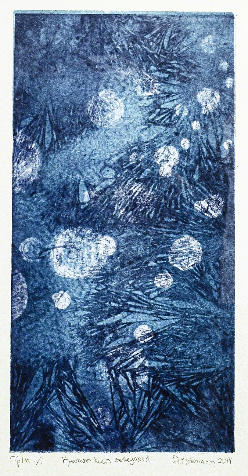 Anna Kolehmainen. Kasvavan kuun selkeydellä. Värigrafiikka 1/1. Kehystetty 48X33 cm.