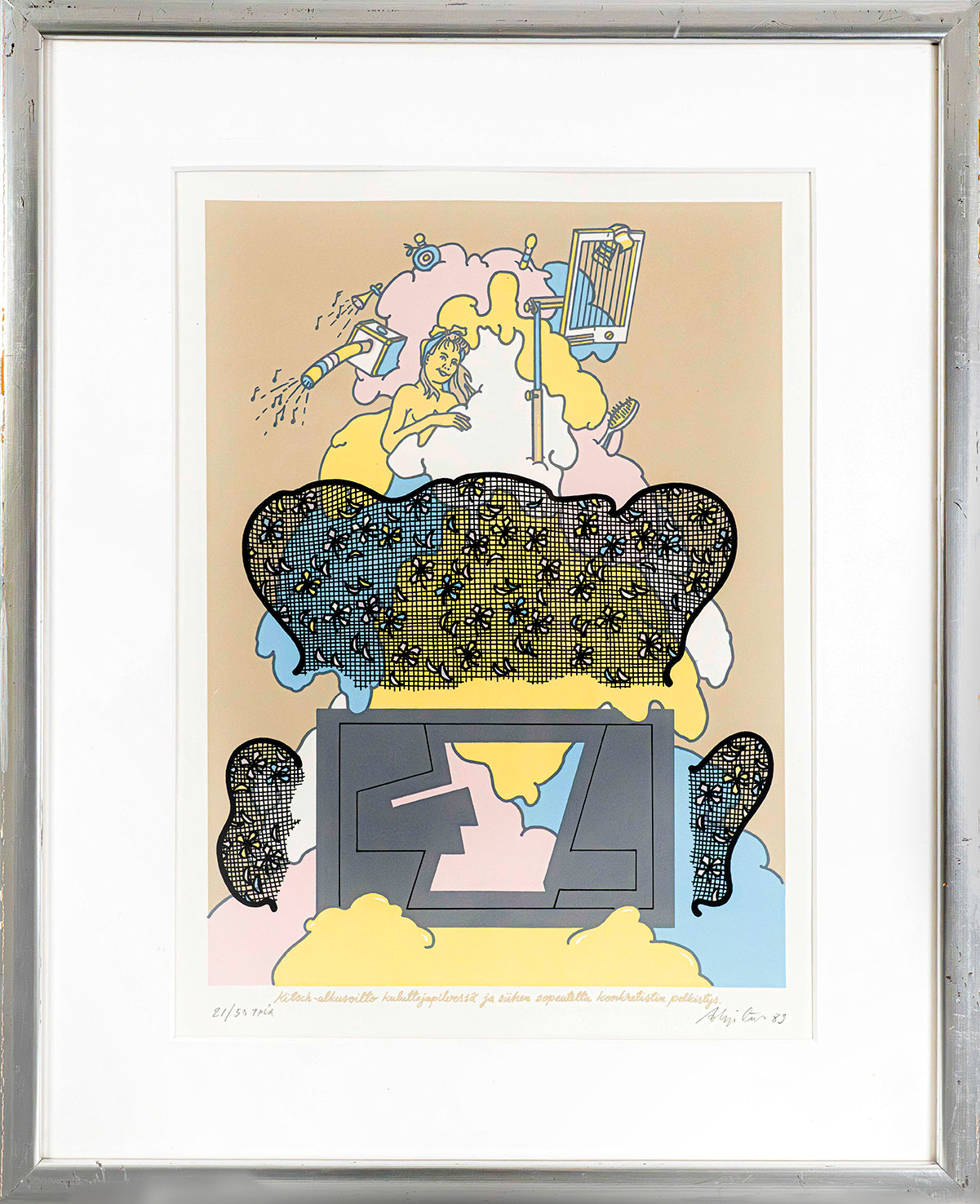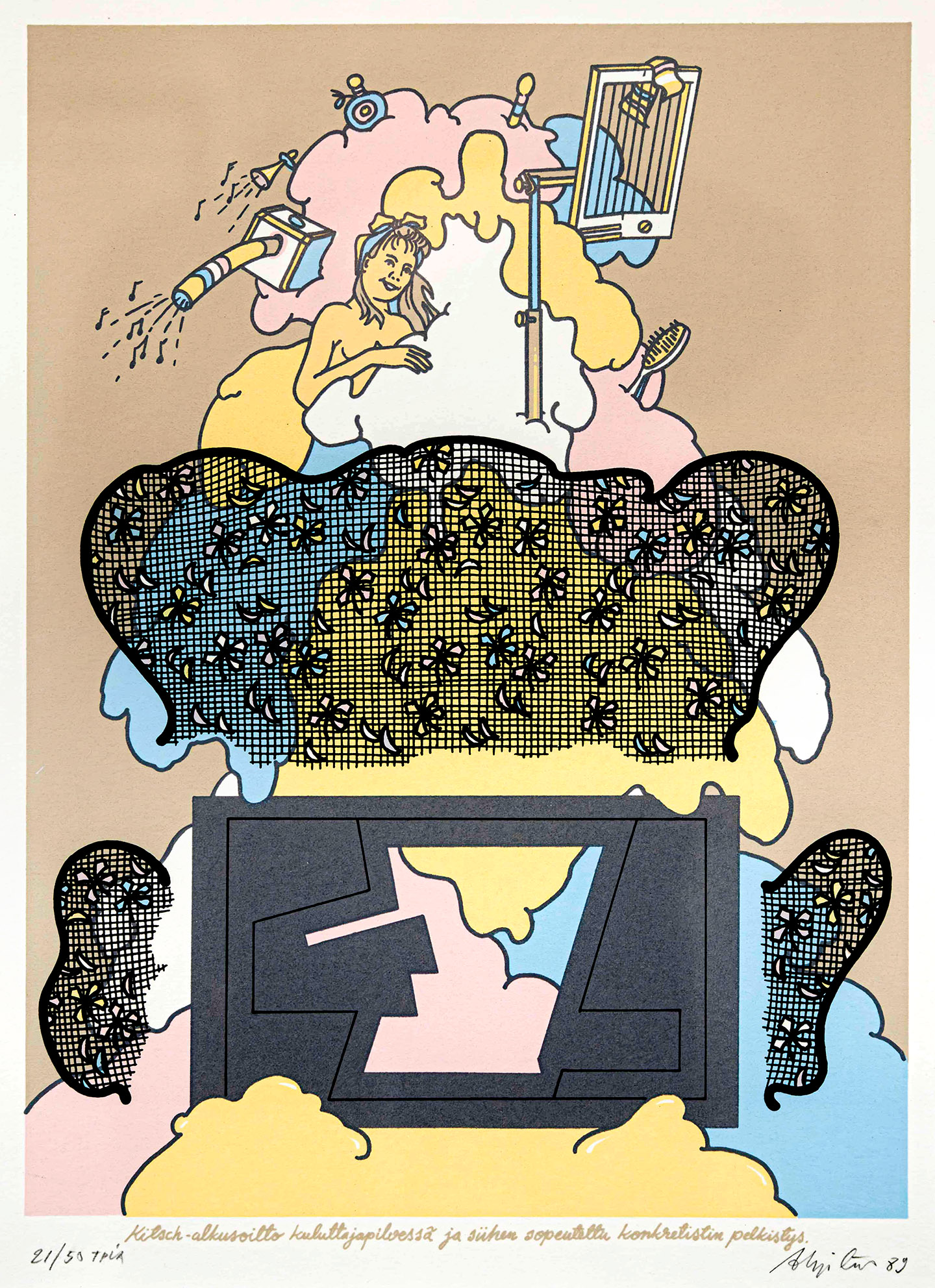 Unto Ahjotuli. Kitch-alkusoitto, 1989. Serigrafia. Kehystetty 54×44 cm.