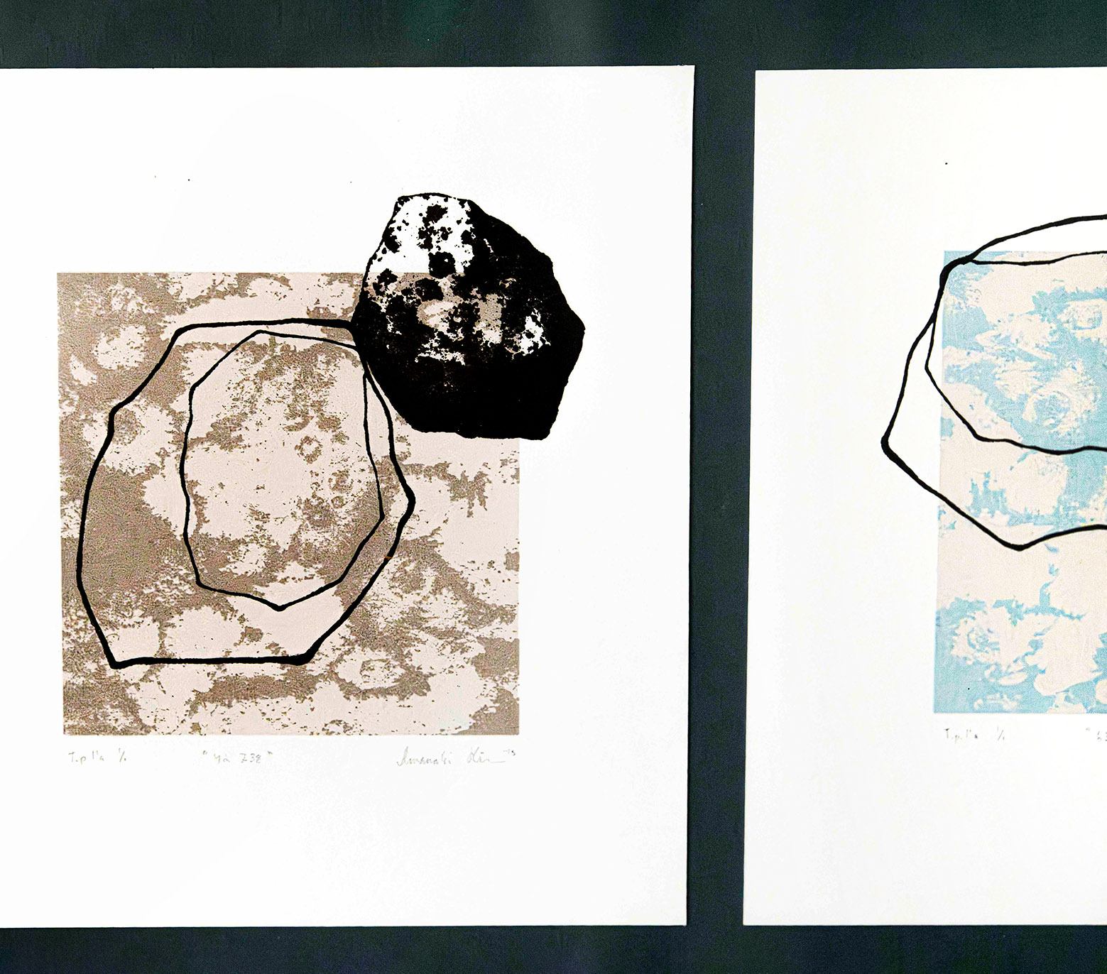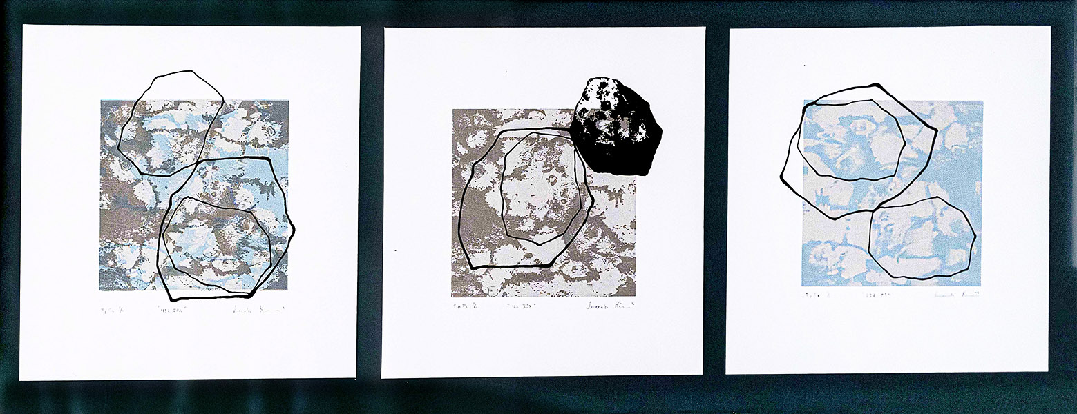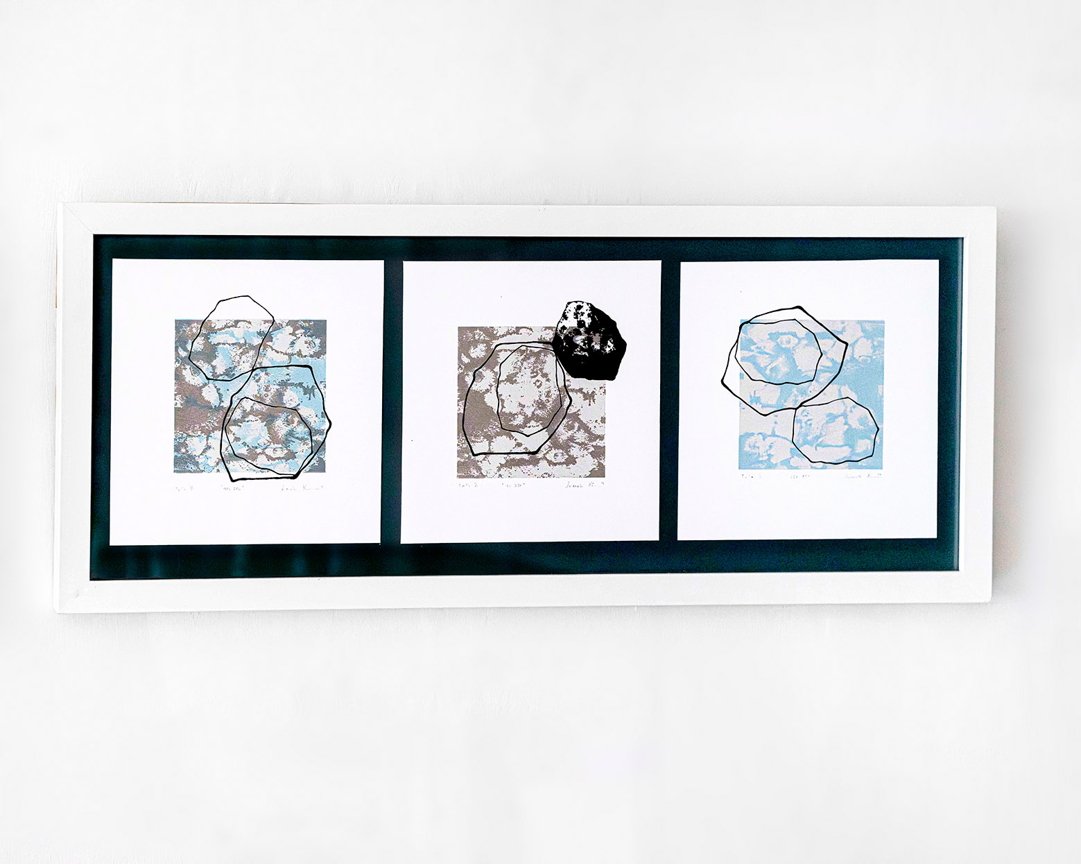 Tekniikka: Kolme erikseen signeerattua grafiikan vedosta 1/1 vihertävällä pohjalla.