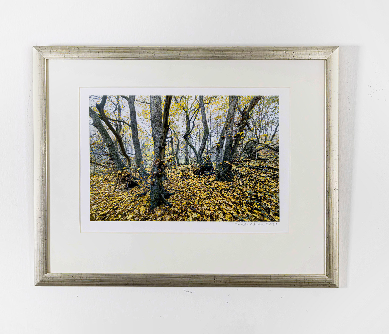 Kehystys- ja ripustustietoja: Lämmin hopeinen puukehys