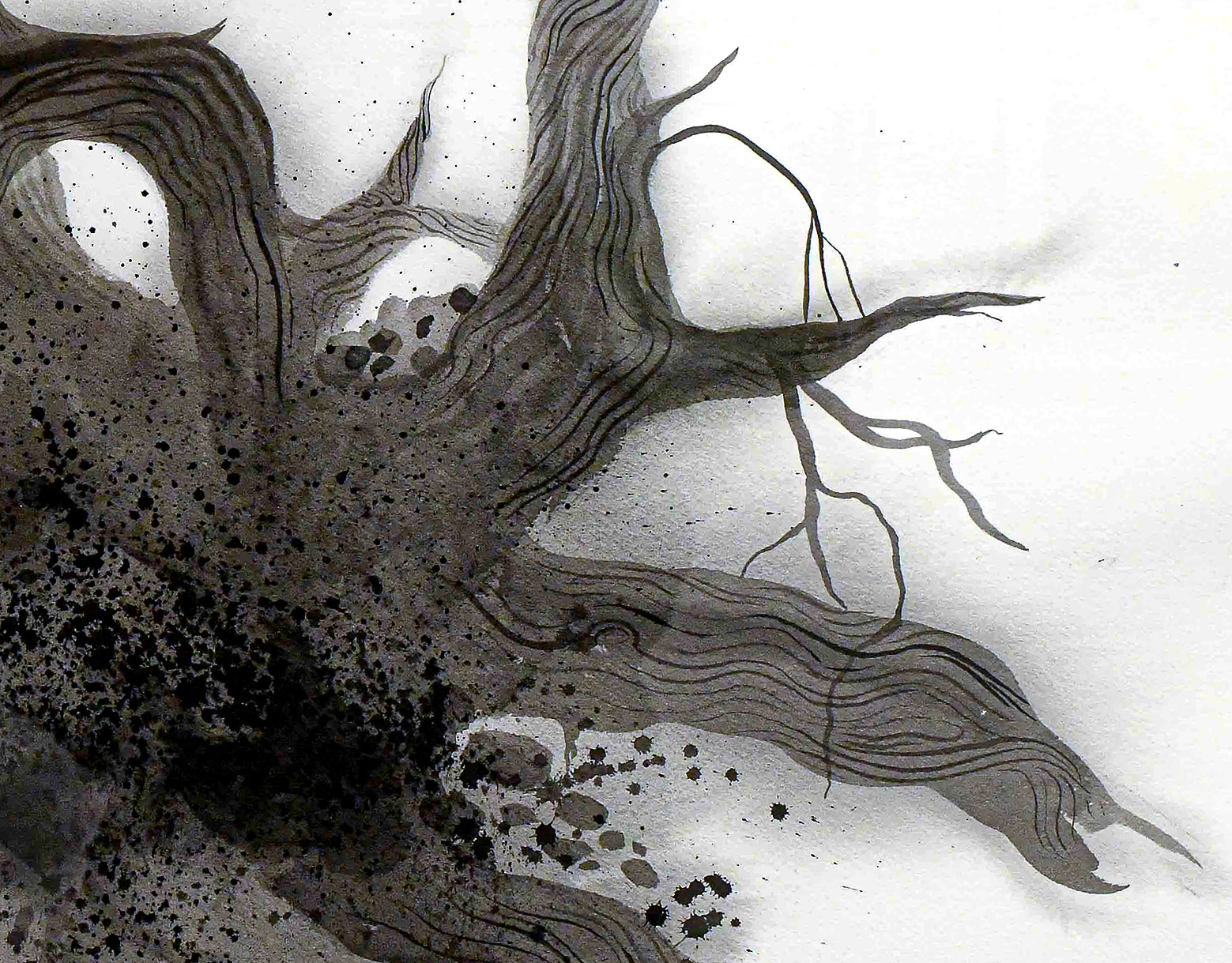 Saara Salmi. Mänty, 2016. Mustetyö akvarellipaperille.