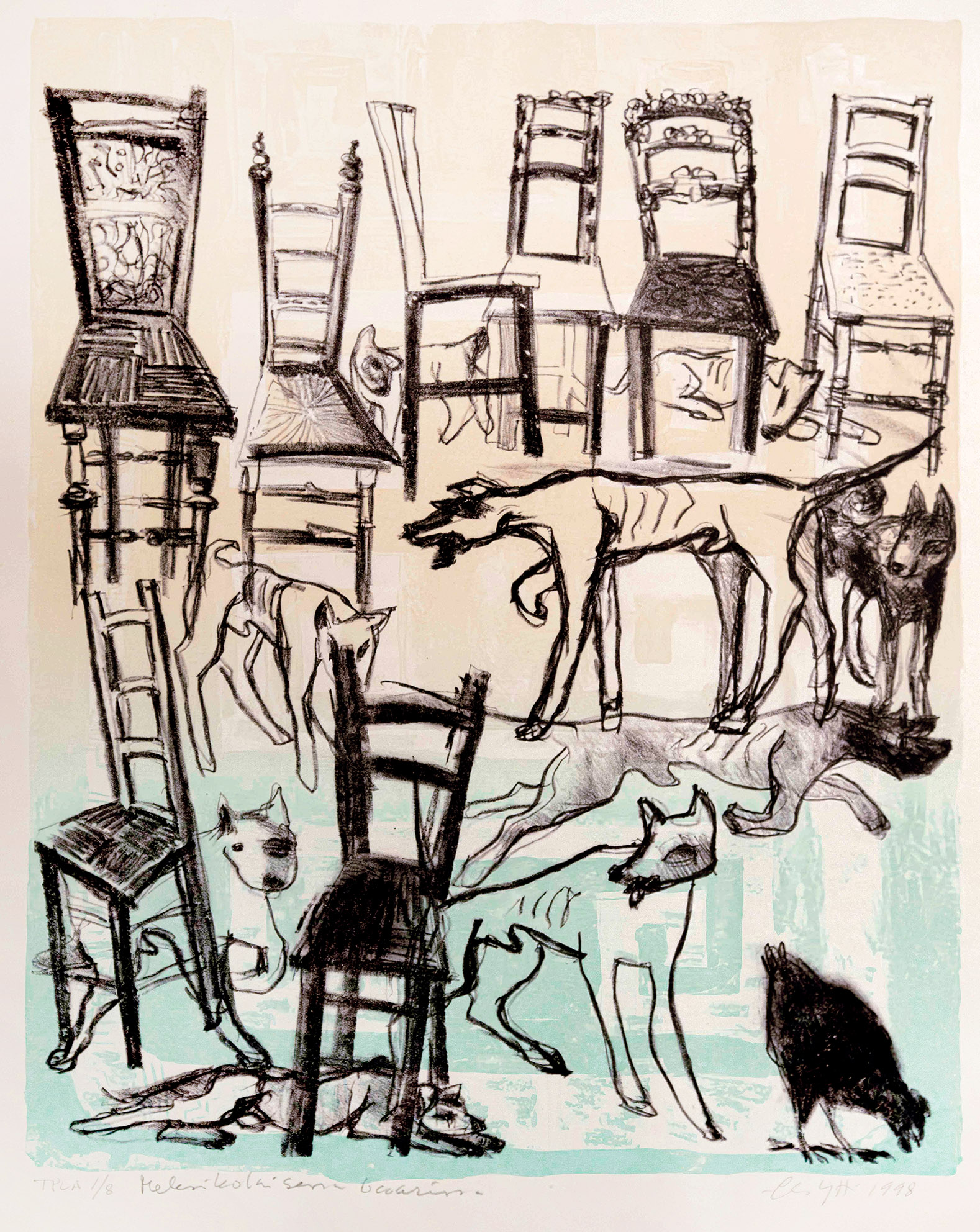 Elsa Ytti. Meksikolaisessa baarissa. 1998. Litografia T.p.l’a 1/8. 45X38 cm, kehystetty.
