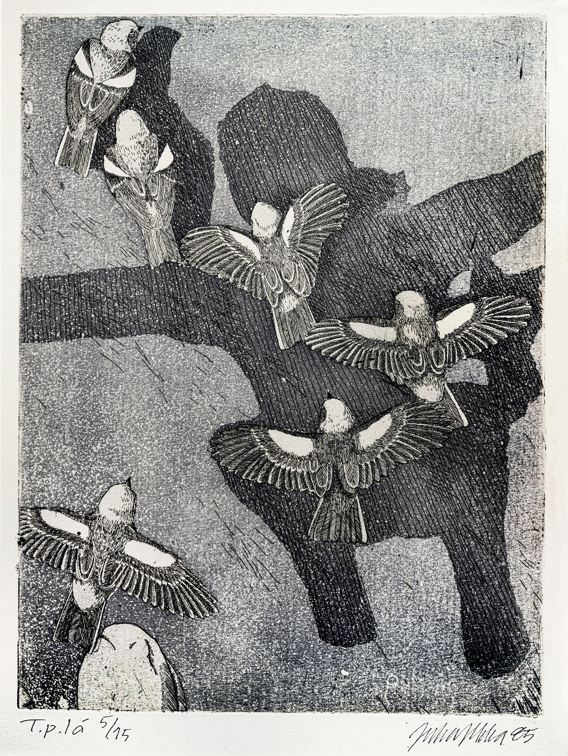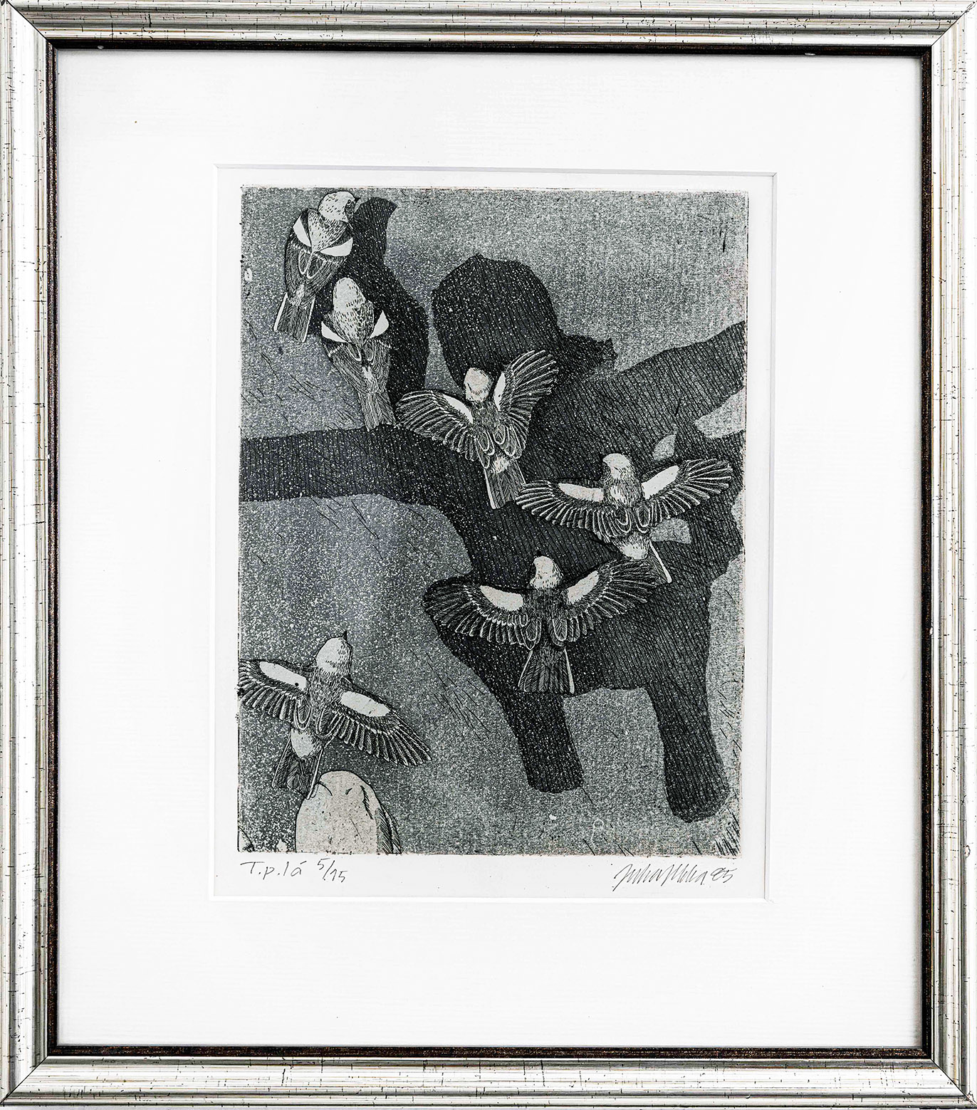 Juha Ilkka. Nimetön. 1985. Grafiikka, 5/15. Kehystetty, 38X33 cm.