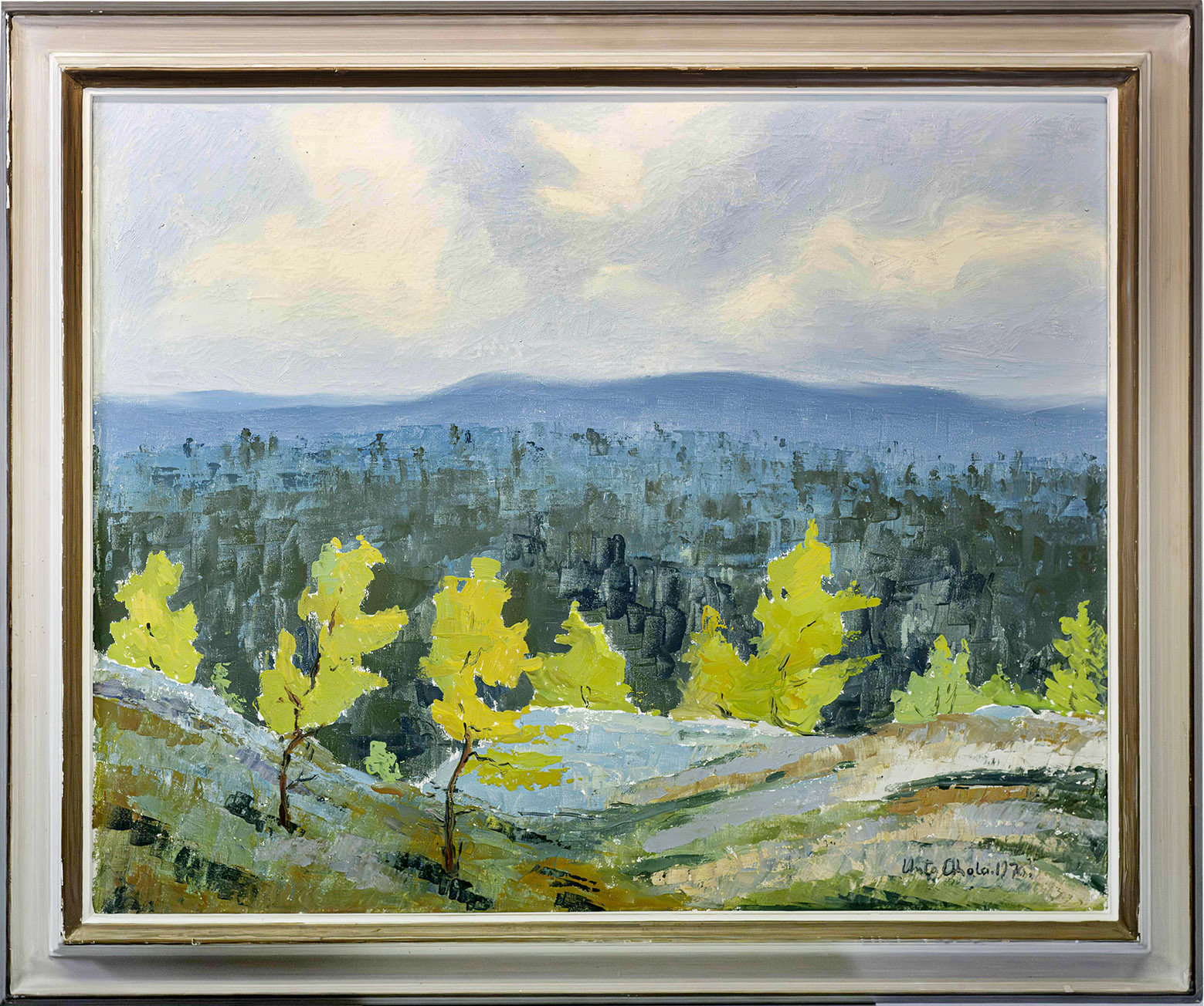 Kunto: Maalaus virheetön, kehyksessä maalilohkeamia