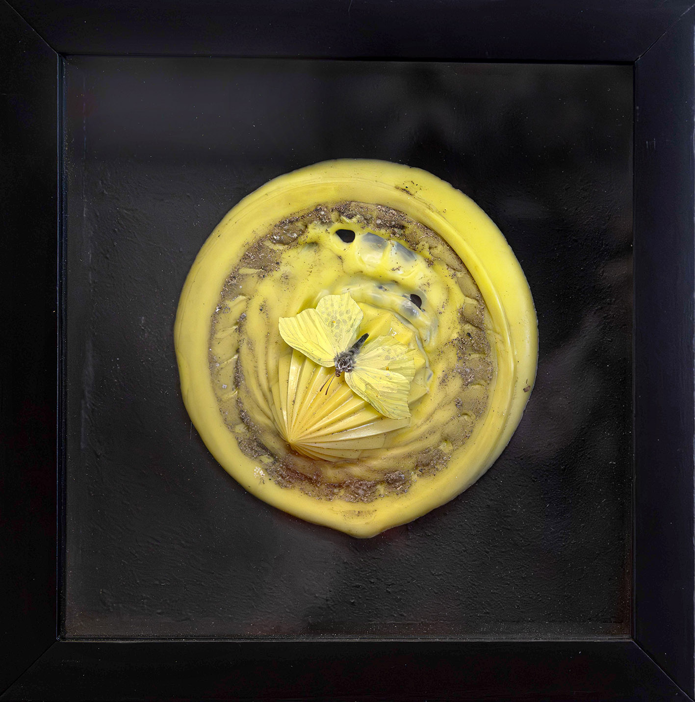 Pekka Suomäki. Samaan aikaan toisaalla. 2020. Esinemontaasi vitriinikehyksessä.