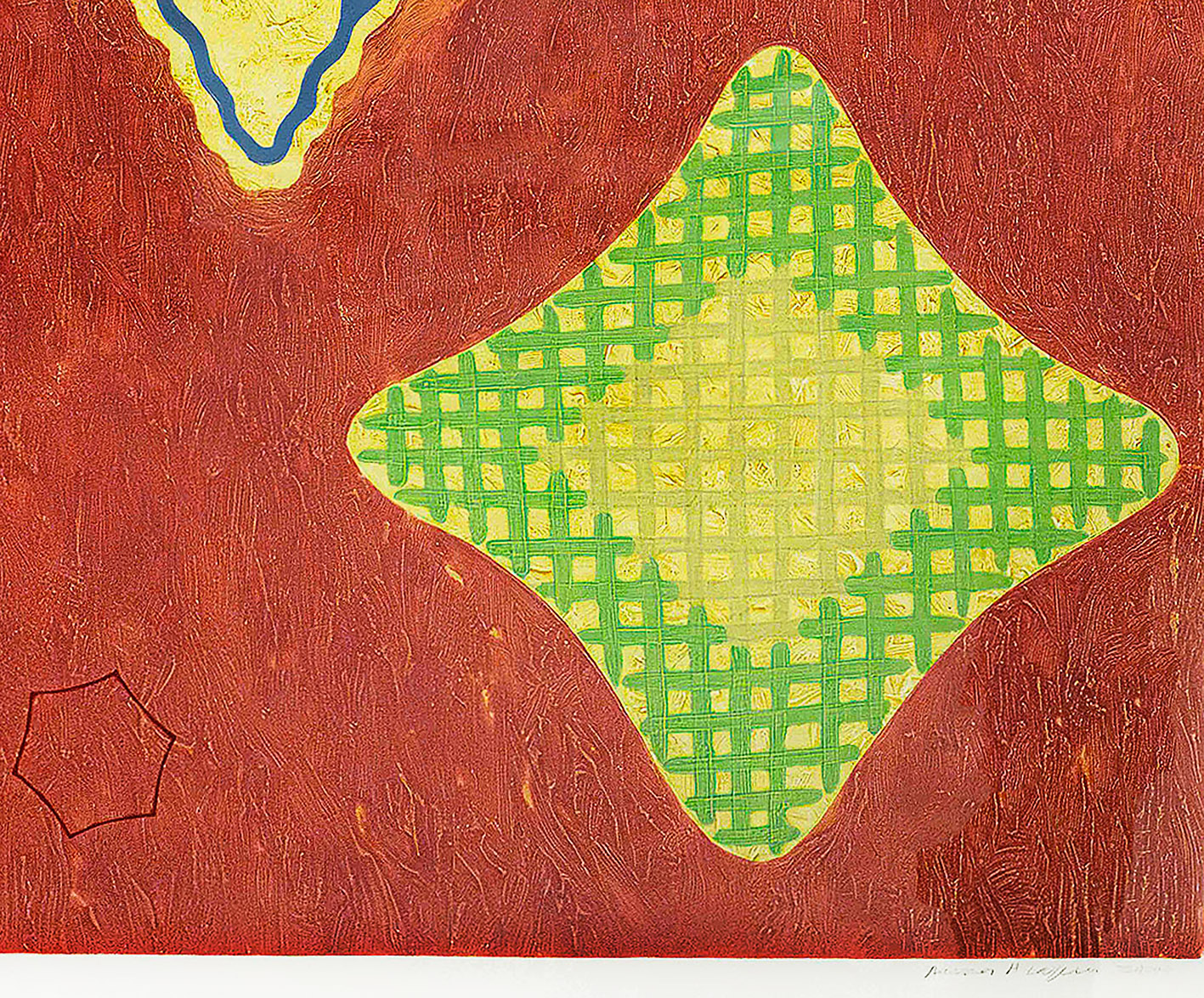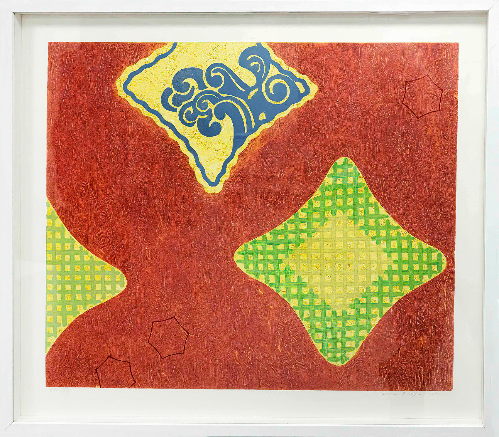 Anna Alapuro. Sisätila, 2000. Carborunbum, kuivaneula 1/5. Valkoinen vitriinikehys 75×87 cm.