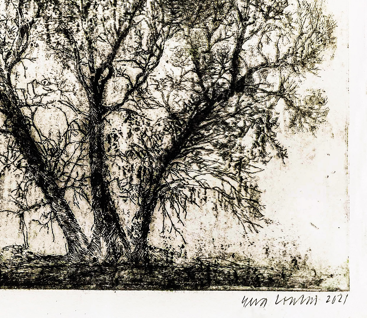 Eeva Louhio. Varhainen kevät, 2021. Grafiikka, kehystetty 63X64 cm.